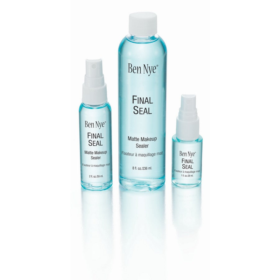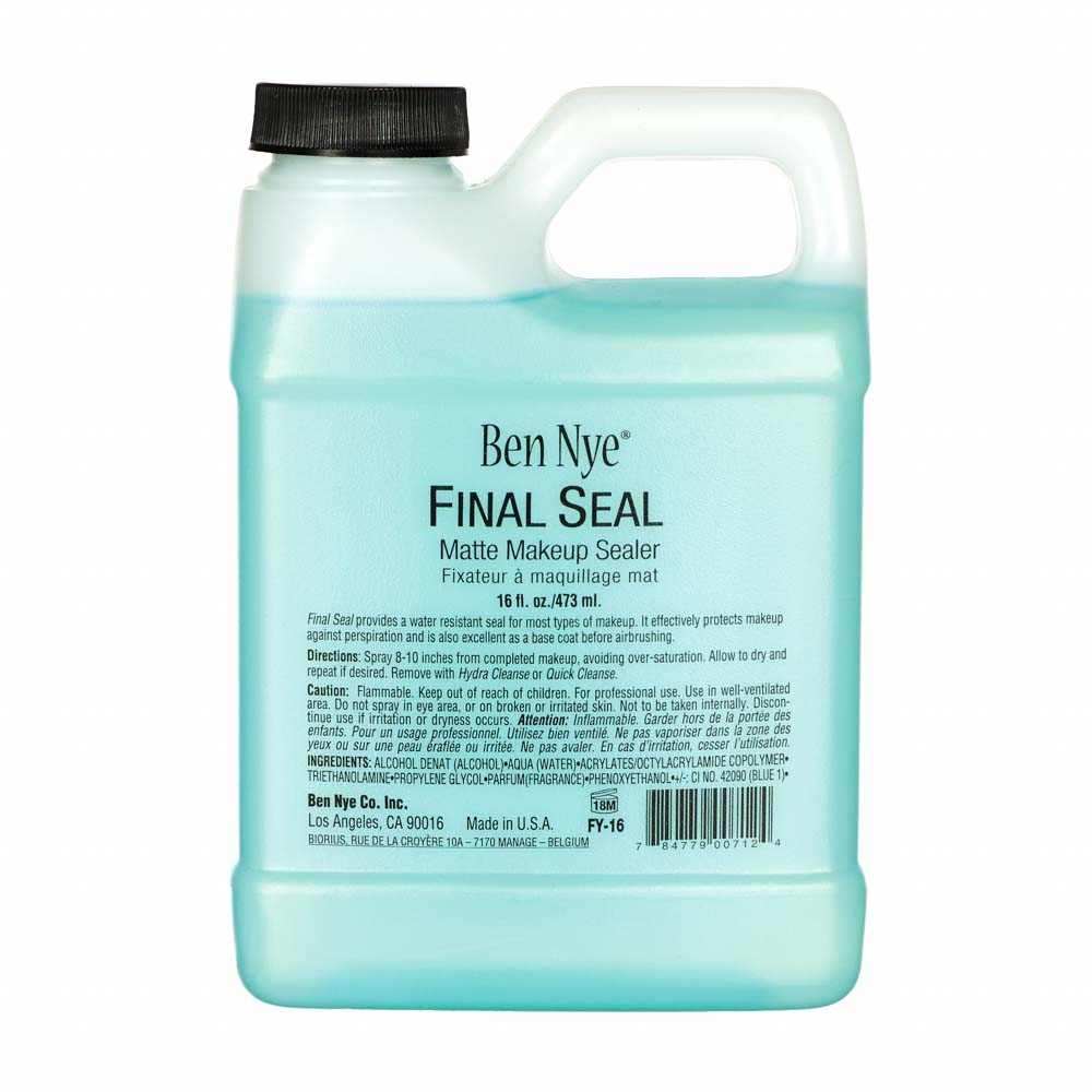 Final Seal de Ben Nye maintient le maquillage en place, même lorsque les artistes transpirent abondamment. Appliquez le pré-maquillage pour retarder la transpiration, et sur tout maquillage terminé pour une finition sans taches. Ajoute de la durabilité aux peintures liquides brossées à l’air. À base d'alcool au parfum de menthe fraîche. Utiliser dans un endroit bien ventilé. Attendez-vous à 20 à 50 applications par once. Disponible dans une large gamme de tailles adaptées aux kits. Il a un parfum mentholé qui procure une sensation de fraîcheur pendant que le maquillage se fixe sur le visage et le corps.