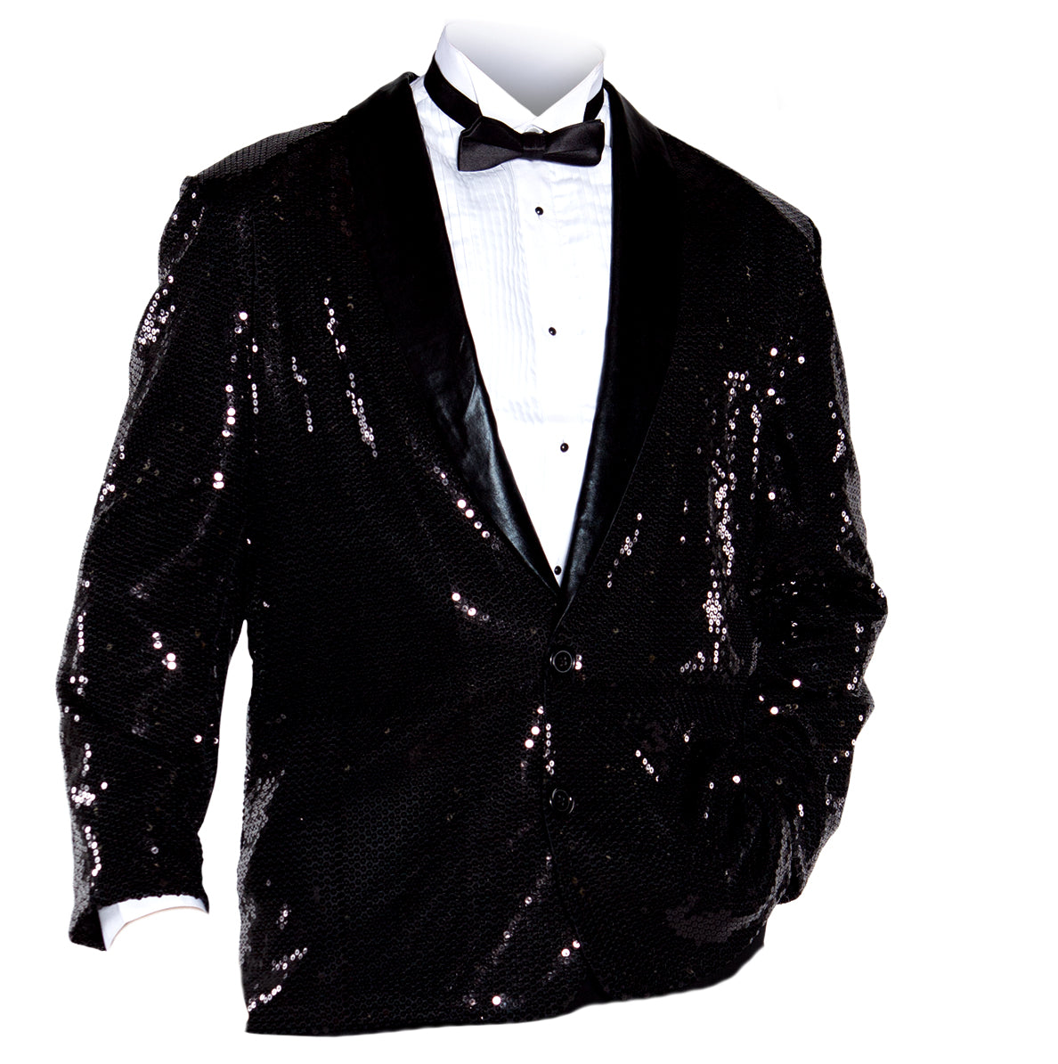 Veste noire à paillettes, taille unique pour adulte. Cette veste pour homme pourrait être portée avec un costume disco des années 1970 ou pour un party.