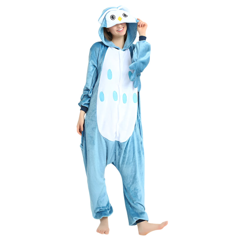 Costume d'oiseau hibou avec boutons pour adultes. Déguisement animal unisexe avec combinaison onesie uniquement.