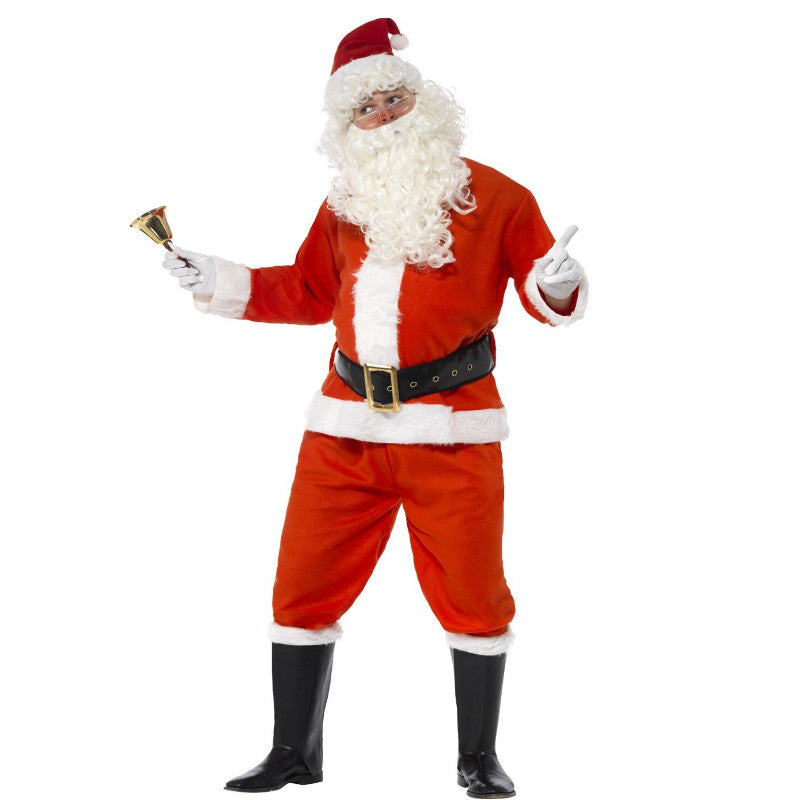Ce costume de Père Noël pour adulte comprend : une veste rouge, un pantalon, une ceinture, un chapeau, des gants et des couvre-bottes. Ce déguisement est parfait pour célébrer la période de Noël.