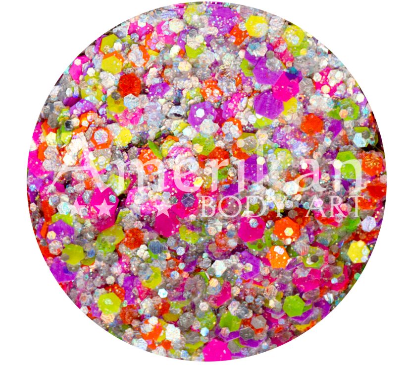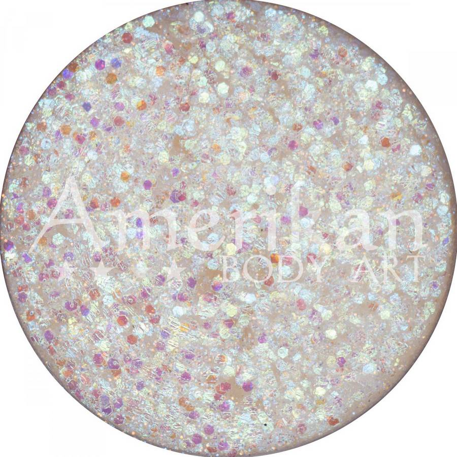 Waxy cream make-up with glitter inside. Glitter Cremes apply beautifully over water-based face and body paints without smudging your paint. Made with Amerikan body art's custom glitter blends, in a creamy oil/wax base.