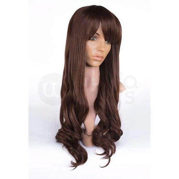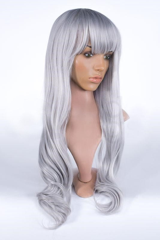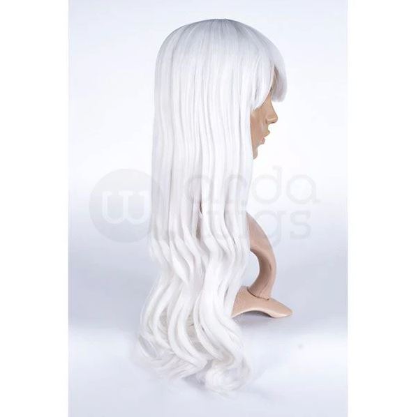 Wig with lovely wave starting halfway down. It has straight-cut bangs in the front, and gently feathered sides and back, which makes this a very flattering wig - perfect for lolita or other fashions! Short, feather-cropped bangs measure 7.5" (19 cm) from crown to tip and should hit around the eyebrow. Overall length from crown to back with wave is 26" (66 cm).