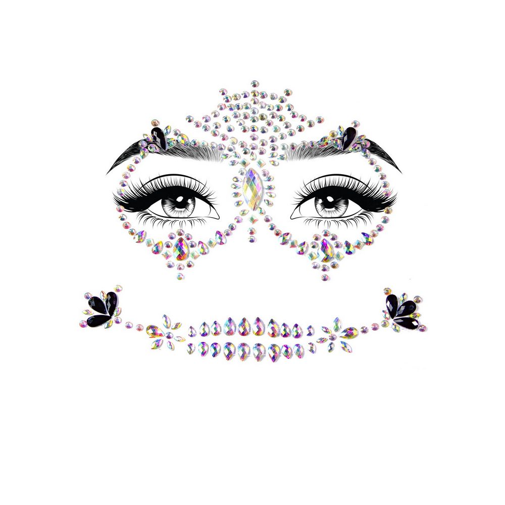 Adhesive face jewels sticker. Easy to apply; loosen the jewel from the backing and place on the desired spot on the skin and apply medium pressure. No glue needed. Tested and bodysafe.
