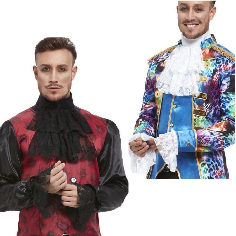 Cravat & Cuff Set in white or black. Could be used for a period costume, such as a duke, a victorian men, a gothic character or an elegant vampire costume