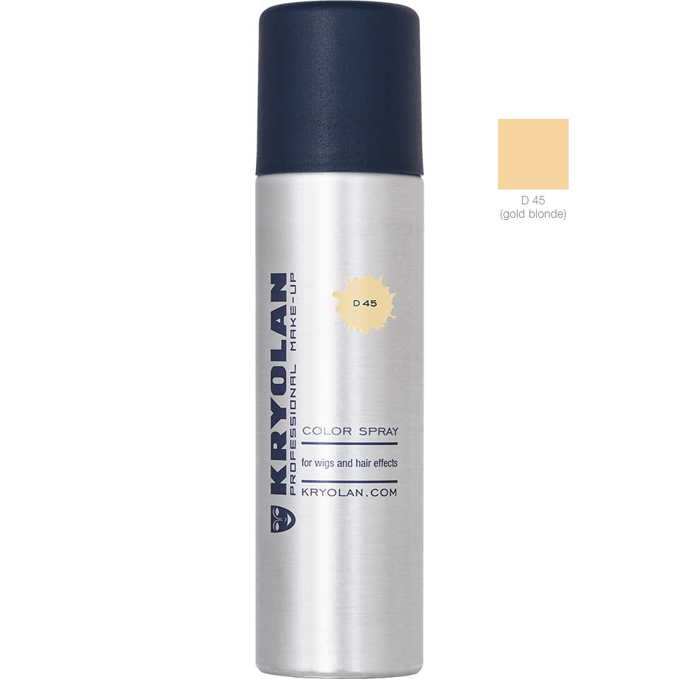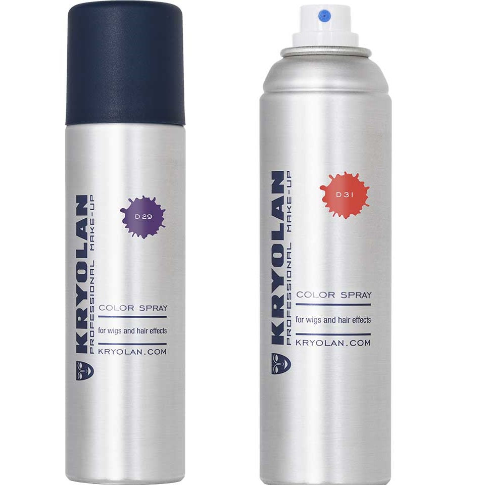 Kryolan Color Spray 2250 is an effectively covering spray for hair effects and wigs. The wide selection of colors from intensive and vivid colors is outstandingly suited for highly imaginative creations. Other color shades supplement character make-up with realistic effects. Apply Color Spray from a distance of about 30 cm. It can be very easily removed with shampoo and warm water. For use with dyed or bleached hair, we recommend a suitability test before the first application. Please note that the spray it water soluble. To protect from sweat, fixing spray might help.