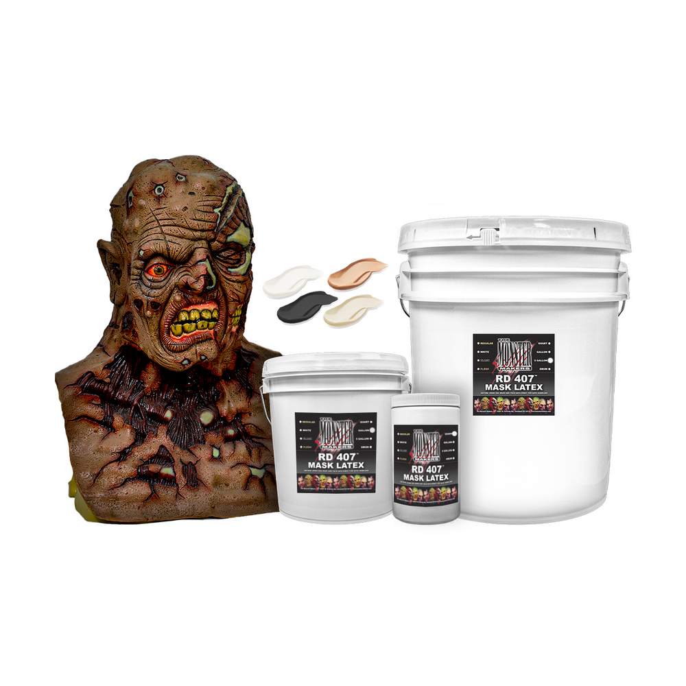 Formulated specifically for casting into gypsum molds, RD-407™ Mask Making Latex is a single component, air drying natural latex compound used widely by mask makers around the globe. Popular among many special effects artists, RD-407™ can be brushed or poured into gypsum molds. It features a quick skin build-up, excellent detail reproduction and a fast demold. RD-407(™) can be painted with adhesive based paints or Monster Makers Mask Paints. RD-407™ comes as a naturally viscous material that yields a stretchy but durable rubber upon curing. While other companies sell products that they call RD-407, this is the official trademarked RD-407™ formulation originally sold by R&D Latex Company in Commerce, California: a recipe that is now well over 50 years old! RD 407(™) Halloween White: Originally formulated to create the Mini Halloween "Shape Mask" for the 30th Anniversary edition of John Carpenter's Halloween DVD release, this version of RD 407™ mask latex is pre-colored Halloween white which saves time and cost in painting and pigmenting. RD 407(™) Bat Black: Is a pre-colored black latex which incorporates the very same black pigment that Monster Makers provided for the Feature Film, Batman Begins, starring Christian Bale. Bat Black is a highly pigmented rubber which saves time and cost for painting and pigmenting. RD 407(™) Flesh Tone: This is a pre-colored medium flesh tone that provides a caucasianish base color to save time and cost in painting and pigmenting.