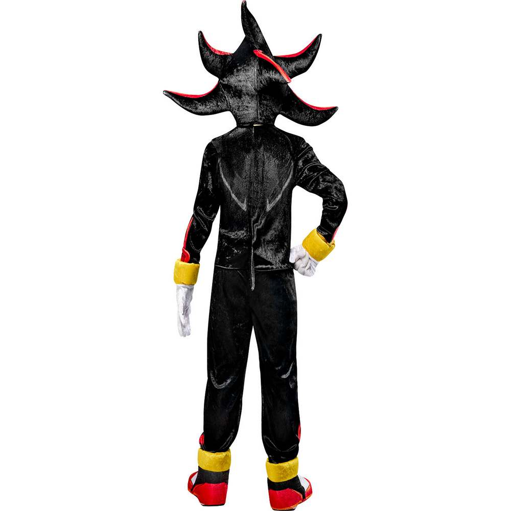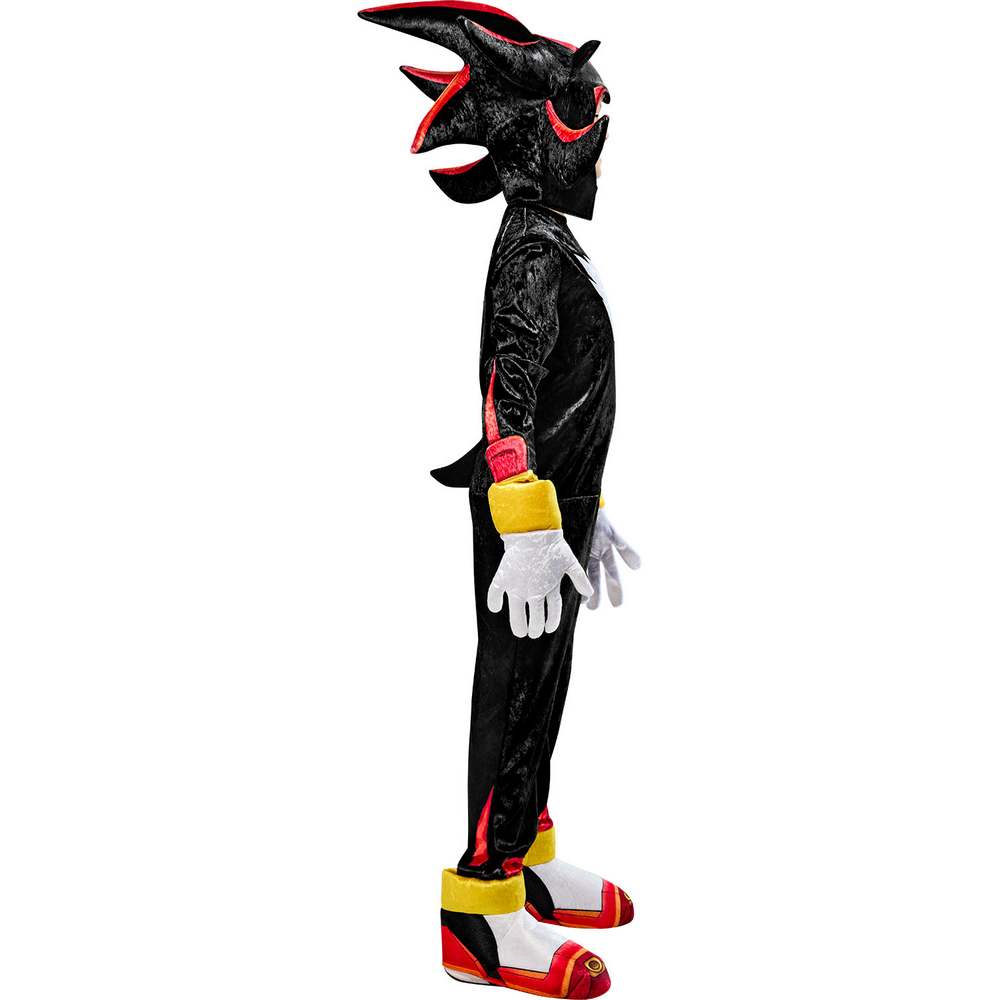 Shadow the Hedgehog Deluxe children Costume from Sonic the Hedgehog. This kids unisex disguise includes: Jumpsuit with Attached Boot Covers, Gloves and Headpiece. Officially licensed from the movie Sonic the Hedgehog 3. Trademark of Sega Corporation.